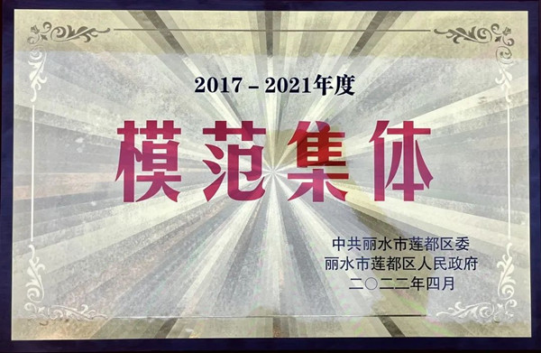 浙江中立建設榮獲蓮都區2017—2021年度模范集體稱號