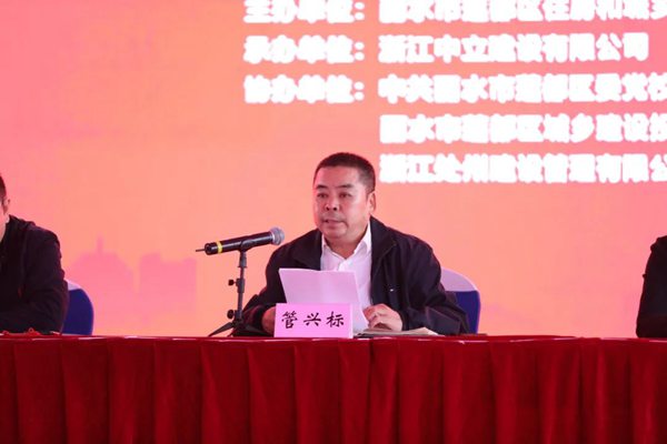 蓮都區(qū)副區(qū)長(zhǎng)管興標(biāo)、蓮都區(qū)建設(shè)局副局長(zhǎng)吳大勇、蓮都區(qū)委黨校常務(wù)副校長(zhǎng)陸朝霞、區(qū)建投公司副經(jīng)理劉良、浙江中立建設(shè)有限公司董事長(zhǎng)周健、浙江處州監(jiān)理總經(jīng)理王建武主席臺(tái)就座,蓮都區(qū)建筑施工、監(jiān)理企業(yè)代表及相關(guān)主管部門代表參加觀摩會(huì)。